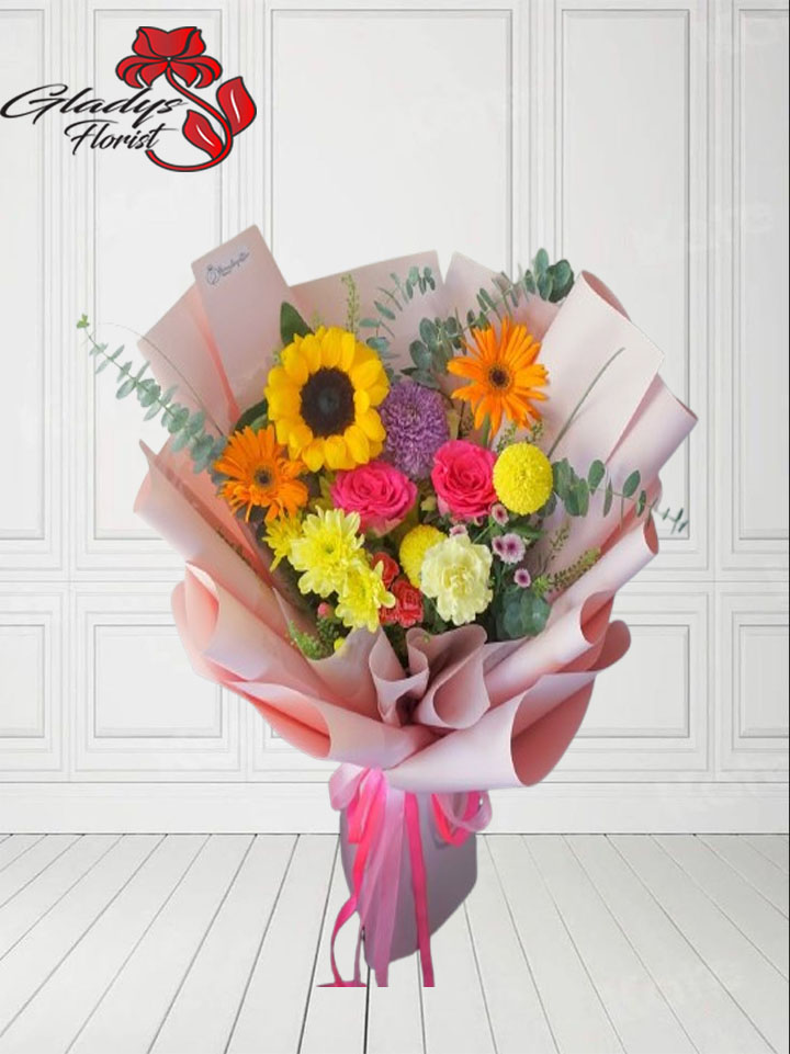Kombinasi beberapa jenis bunga dengan warna lembut akan menghasilkan karangan bunga yang penuh makna dan tidak berlebihan.